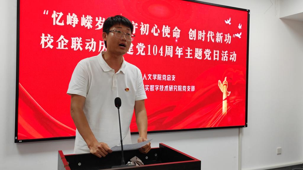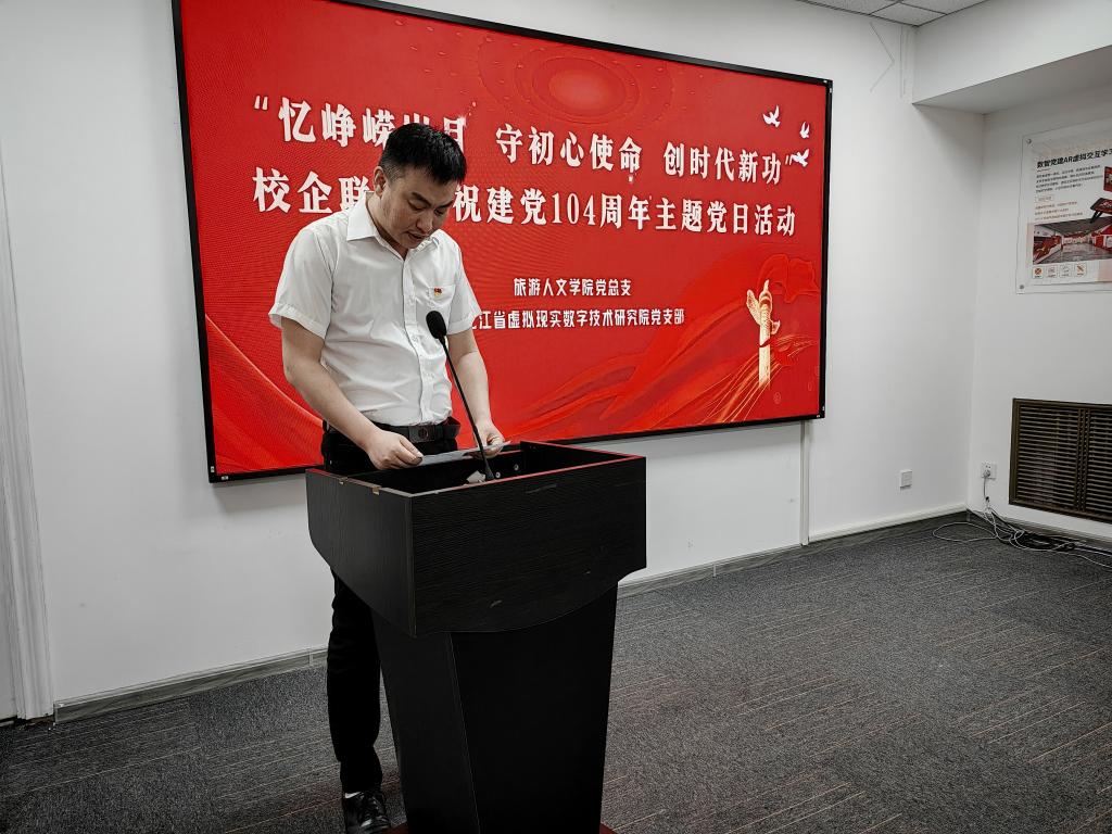 6月27日,我校旅游人文学院党总支与黑龙江省虚拟现实数字技术研究院党支部在哈尔滨爱威尔科技有限公司联合举办“忆峥嵘岁月·守初心使命·创时代新功”庆祝建党104周年主题党日,双方全体党员及民主党派人士积极参与活动。