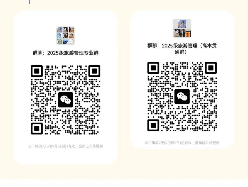 欢迎大家加入旅游人文学院大家庭!愿你们快速融入新环境,拥抱未知,迎接挑战。我将与你们并肩同行,守护你们成长的点滴,见证你们破茧成蝶的蜕变。金秋九月,期待与你们相遇,共同开启这段精彩纷呈的大学旅程,用热爱与坚持书写青春与理想的新篇章!
