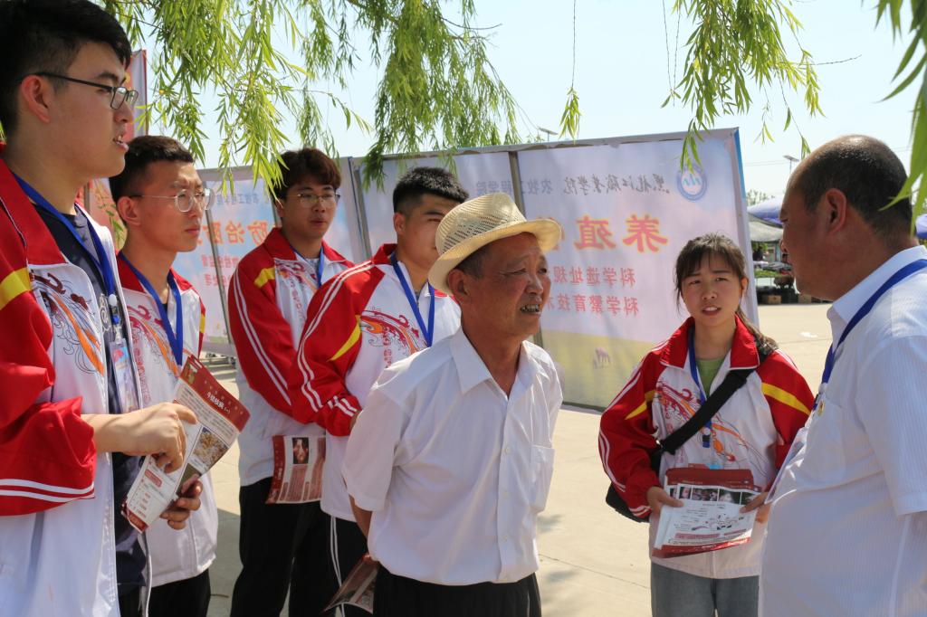 6月24日,在jinnian金年会第二校区组织的“建功新时代,向党献厚礼”庆祝建党98周年科技大集活动中,农牧工程学院师生发挥专业优势,组织专家教授队伍,为农户提供养殖技术服务,受到广泛欢迎。