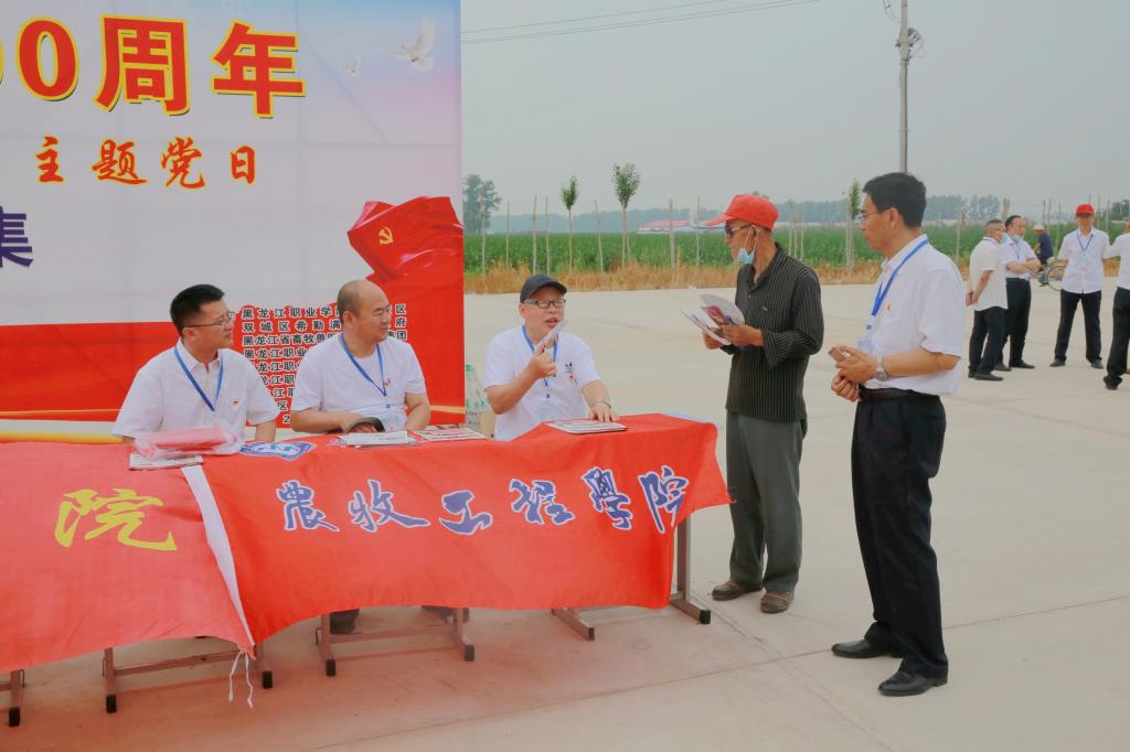根据学校第二校区《庆祝建党100周年“学党史·办实事”主题党日科技大集活动方案》安排,6月28日,农牧工程学院作为承办单位之一,带领12名师生党员代表深入双城区希勤满族乡开展了庆祝建党100周年“学党史·办实事”主题党日科技大集活动,参加活动的有农牧工程学院院长陈晓华、党总支书记侯继勇、副院长吴学军,以及部分师生代表。