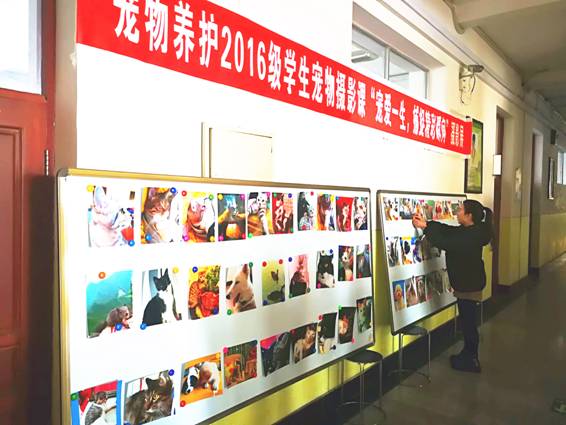 近日,农牧工程学院在2号实训楼举办了宠物摄影课“宠爱一生,捕捉精彩瞬间”宠物摄影展,职院师生纷纷踊跃到场观展。农牧工程学院陈晓华院长、吴学军副院长、宠物养护与驯导团队的老师及其他专业老师在主讲教师李凤玲的陪同下观看了宠物摄影展。