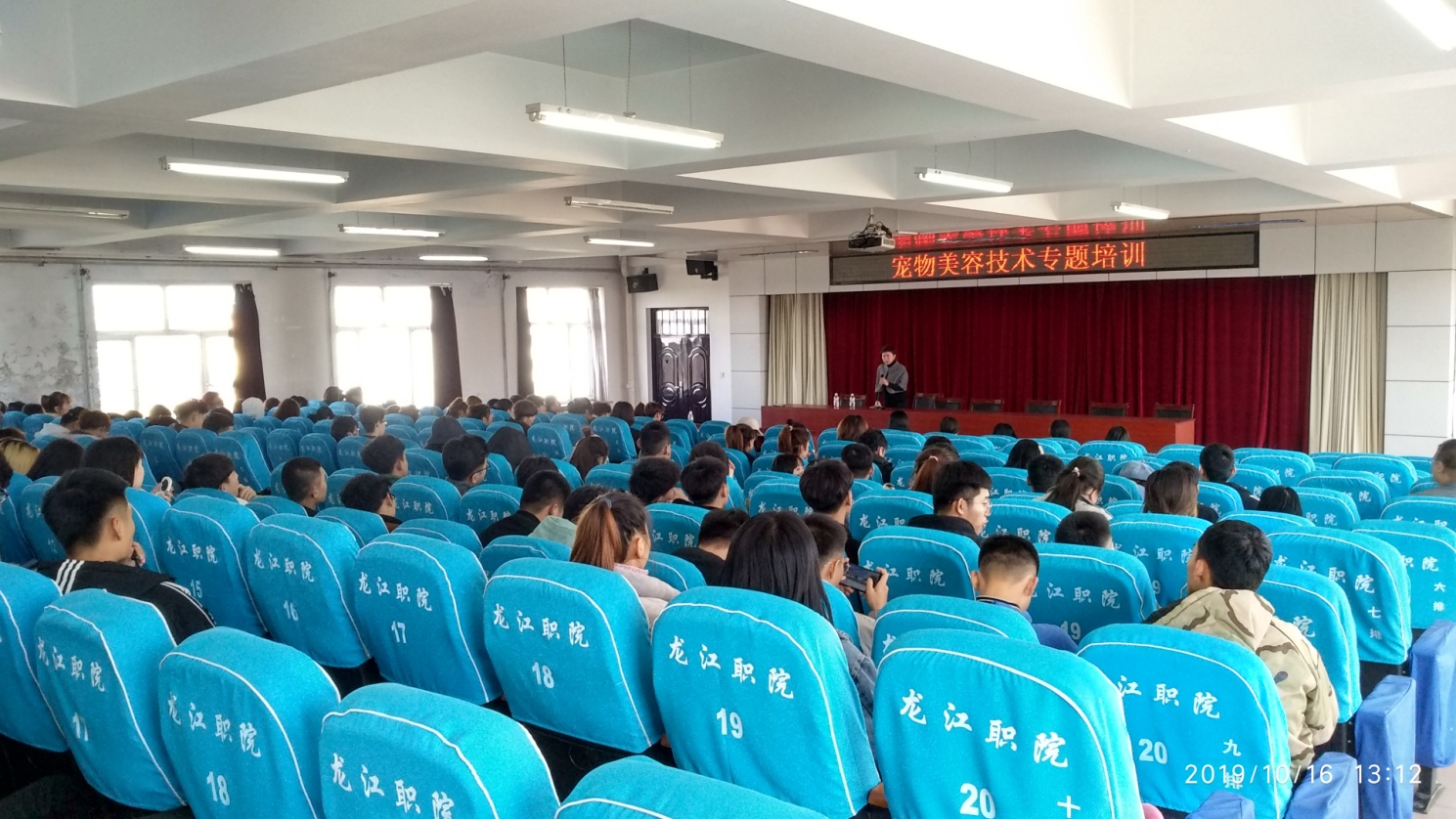 为了全面贯彻《国家职业教育改革实施方案》(国发[2019]4号),面向国家战略和黑龙江省经济发展需求,促进产教融合校企“双元”育人,10月15--16日,金年会农牧工程学院邀请哈尔滨梦溪宠物连锁机构(CKU授权单位)董事长雷梦溪,哈尔滨谁比我酷宠物美容学校(NGKC授权单位)校长李树娟进入校园为金年会宠物养护与驯导专业学生进行专场形式的授课与培训。