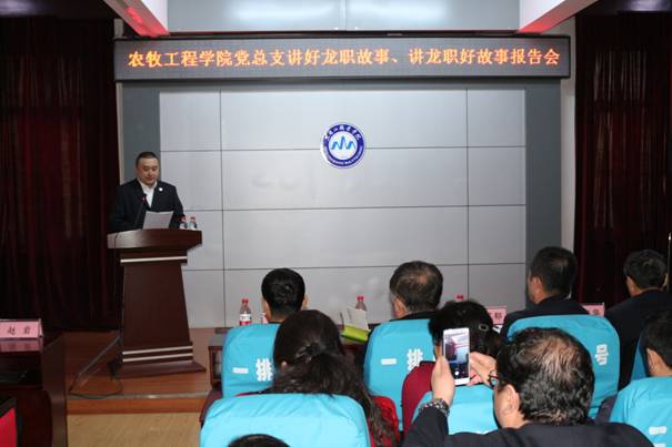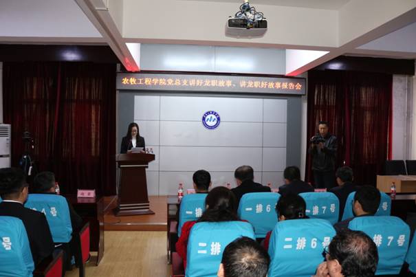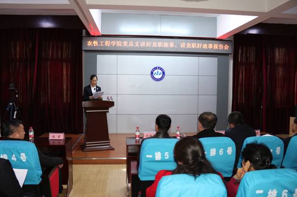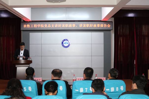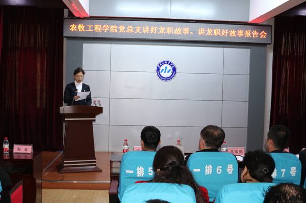 在学校迎来70周年华诞之际,为了进一步加强“爱党、爱国、爱校、爱生”教育,以“不忘初心、牢记使命”主题教育为统领,以弘扬“铺路石”文化、塑造“龙职”品牌为主题,以不忘初心铸精神、凝聚人心创品牌为宗旨,弘扬和传承“自强有为、兴业报国”学校精神和“当好学生的铺路石”核心价值理念,4月13日农牧工程学院党总支组织召开了“讲好‘龙职’故事,讲‘龙职’好故事”报告会。学校党委副书记周家郁、宣传部金永红处长,农牧工程学院班子成员和40多名教职工以及70多名学生参加了会议。会议由农牧工程学院党总支宣传委员时广明主持。