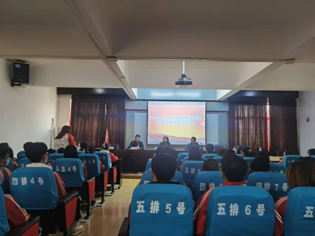 2023年4月11日下午,在jinnian金年会第二校区图书馆三楼会议室,召开了黑龙江八一农垦大学-jinnian金年会动物医学专业高本贯通学生座谈会,黑龙江八一农垦大学应用科技学院党总支书记姜玉美,辅导员黄伟东出席会议,农牧工程学院党总支副书记时广明出席并主持会议,学管办主任徐松琪、动物医学高本贯通专业学业导师胡文彦和牟永成、辅导员李丽参加会议。