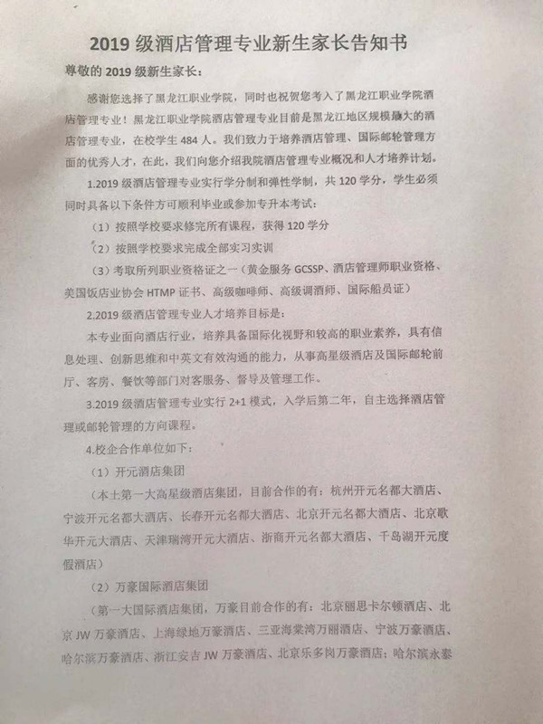 会议首先由徐德红介绍酒店管理专业概况;随后,她从专业人才培养目标及模式方面进行了深入的阐述;最后介绍了专业校企合作单位及实习就业情况,并代表学院向家长承诺,同时家长也在下发的新生家长告知书中签字承诺。