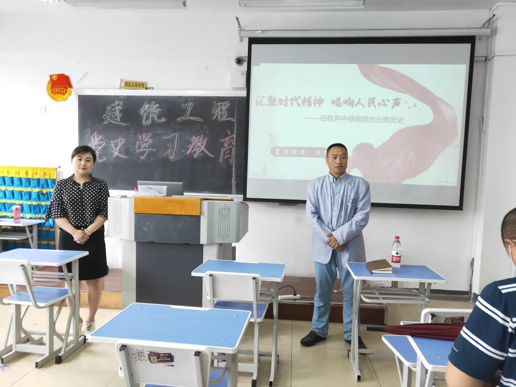 2021年6月18日下午13:30,“建筑工程学院党史学习教育专题讲座”在清华楼702教室举办,本次讲座特邀金年会思政部教师张旭为学院师生作了《汇聚时代精神 唱响人民心声——在歌声中感悟党的光辉历史》的专题讲座,学院无课教工、2020级学生干部及入党积极分子代表聆听讲座,讲座活动由学院党总支书记程刚主持。