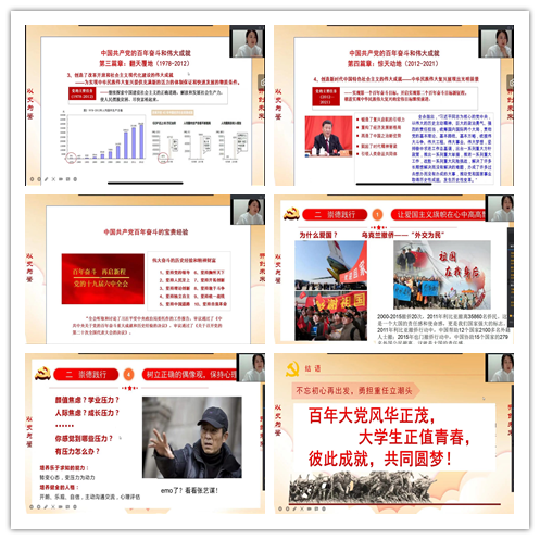 宣讲会上,徐永慧老师从党的十九届六中全会的会议精神、重要性和启示性等方面做了全面深入的解读,带领学生重温红色经典,回顾党的重大历史事件,引导学生做新时代有为青年。宣讲会分为两部分内容和四个篇章进行开展,两部分内容分别是一:学史明志、二:崇德践行;四个篇章分别是第一篇章:开天辟地、第二篇章:改天换地、第三篇:翻天覆地和第四篇章:惊天动地。徐老师多维度的穿插解读“没有中国共产党行不行”?“中国不走社会主义道路行不行”?“党做的一切有何启示”?等知识点来阐述十九届六中全会的重要性和启示性。并向同学们认真宣讲新时代的青年为什么要爱国、如何爱国、爱国应该怎么做,以及如何树立正确的价值观等现实问题,徐老师将历史事件和当代青年的榜样案例结合在一起,深入浅出地讲给大家听。同学们纷纷表示,通过本次宣讲会的学习,更加明确了新时代青年的历史使命和责任感,会不断加强自身学习,时刻关注社会需求,跟上时代发展。同时对徐老师认真严谨的宣讲表达了衷心的感谢!