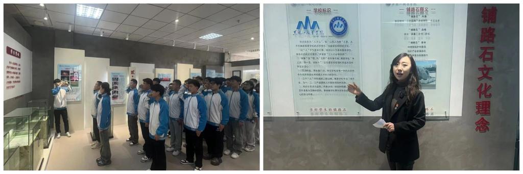 铺路石文化中心内展示了学校历经半个多世纪的发展历程,陈列着学校自创建以来的珍贵历史资料和实物展品,让师生们直观地体会到了学校从创立之初的艰辛到如今的辉煌腾飞的巨大变化。辅导员沈悦老师声情并茂地讲解了学校的文化理念、办学特色、品牌活动、重要事件和杰出人物,在她的讲解下,师生们深刻感受到了学校深厚的文化底蕴和不断进取的拼搏精神。