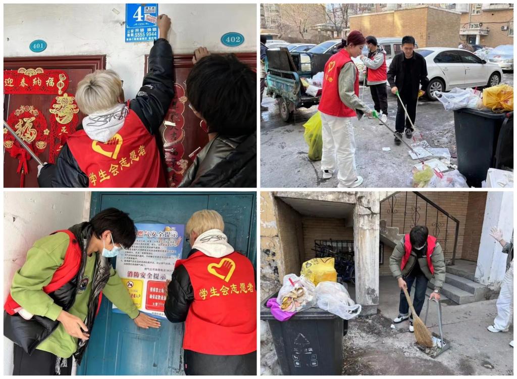 在服务活动的过程中,同学们听从社区人员的指导,迅速地划分成各个小组,进行分工合作。他们毫不畏惧寒风的凛冽,以高度的责任心对待自己分配的工作,室外公共区和居民楼道成为了他们的重点工作服务区域,有的在打扫楼道卫生,有的在清除墙壁上的小广告。同学们认真的态度如同春天般的暖流,洋溢在小区的每一个角落,同时也唤起了居民对环境保护的重视,青年志愿者们用实际行动诠释了当代大学生的社会责任与使命担当。