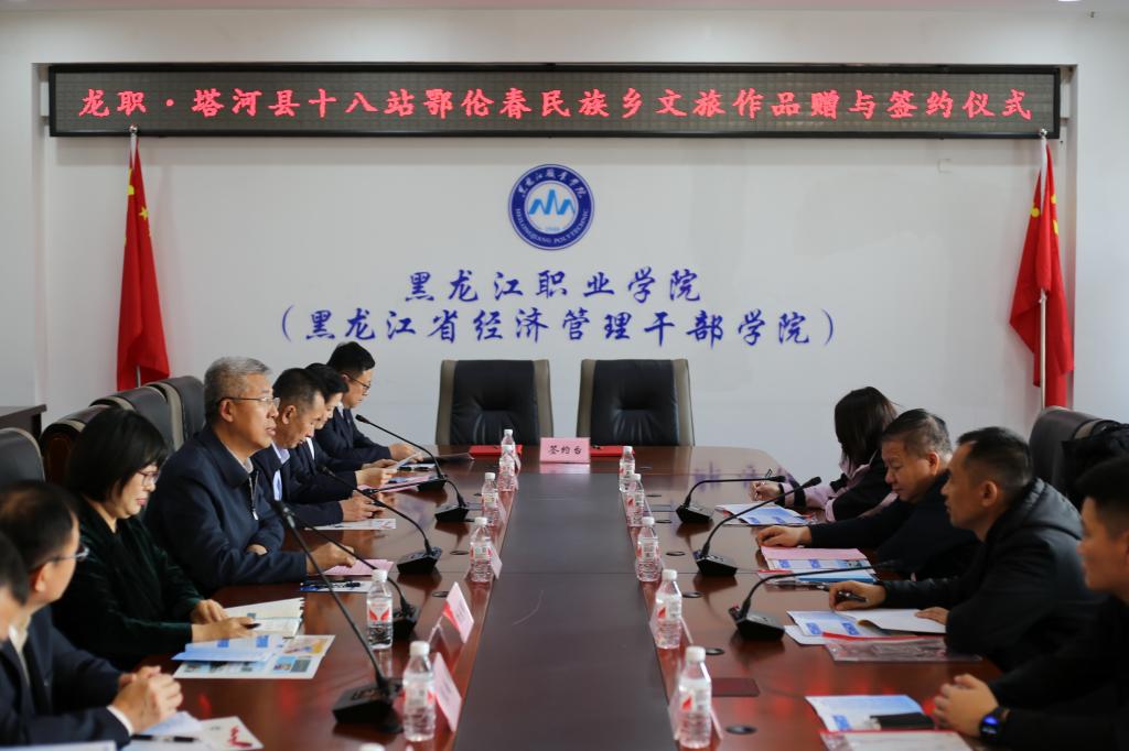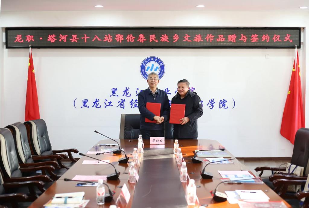 王利文在致辞中强调,此次签约仪式既是校地合作的延续,也是校地双方结下深厚友谊的见证。与塔河县十八站鄂伦春民族乡的合作大有作为、意义深远,是学校大力推进课程思政建设,打造优质资源育人的成功范例。十八站鄂伦春民族乡拥有独特且丰富的民族文化资源,希望以此次共建活动为新的开端,进一步为双方合作“架梯子”“搭台子”“铺路子”,汇聚学校之力,发挥人才之智,挖掘地方潜力和优势,让龙职之花在乡村绽放更加绚烂的光彩,为乡村振兴事业贡献智慧,为促进民族团结贡献力量,共同点亮校地共建的特色发展之路。