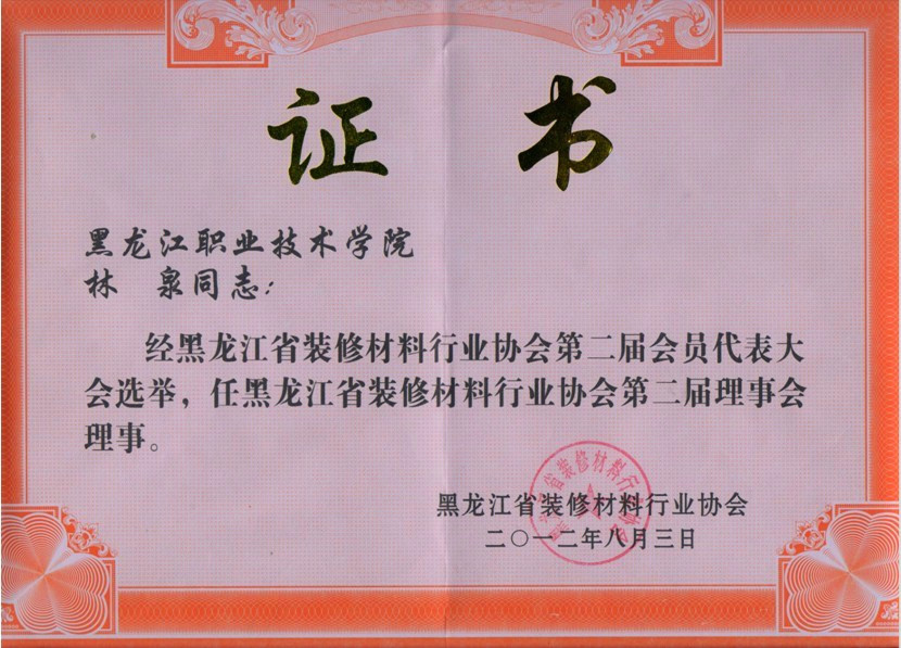 时值学院国家级骨干院校建设取得阶段性成果,各项工作蒸蒸日上之际;jinnian金年会诞生,学院进入历史发展新阶段之时。林泉老师作为能源与材料工程学院的专任教师、建筑装饰工程技术专业团队带头人代表jinnian金年会加入到黑龙江装修材料行业协会,成为协会理事,为能材学院获取了雄厚的优势资源和校企合作先机。装修材料行业协会拥有着近二百余家企业,蕴藏着巨大的校企合作资源和广阔人力需求市场,意义深远,作用巨大。同时,也为今后学院和众多行业企业进行专业共建、人才培养、课程改革、实习实训等校企合作项目提供了强大的推动力。