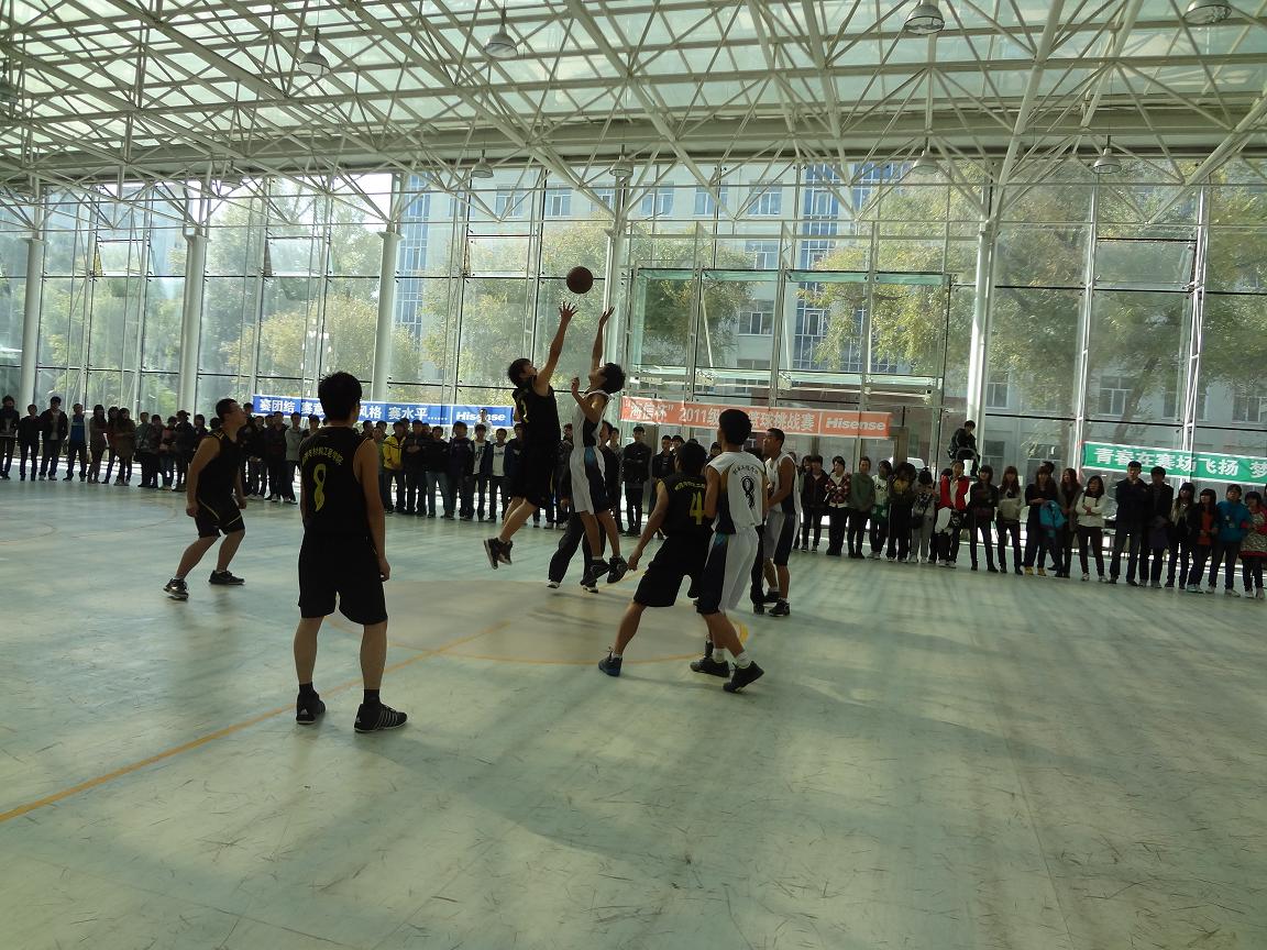 2011年10月11日中午12时我院与机械工程学院在阳光大厅体育馆进行大一新生篮球比赛的最后一场决赛。