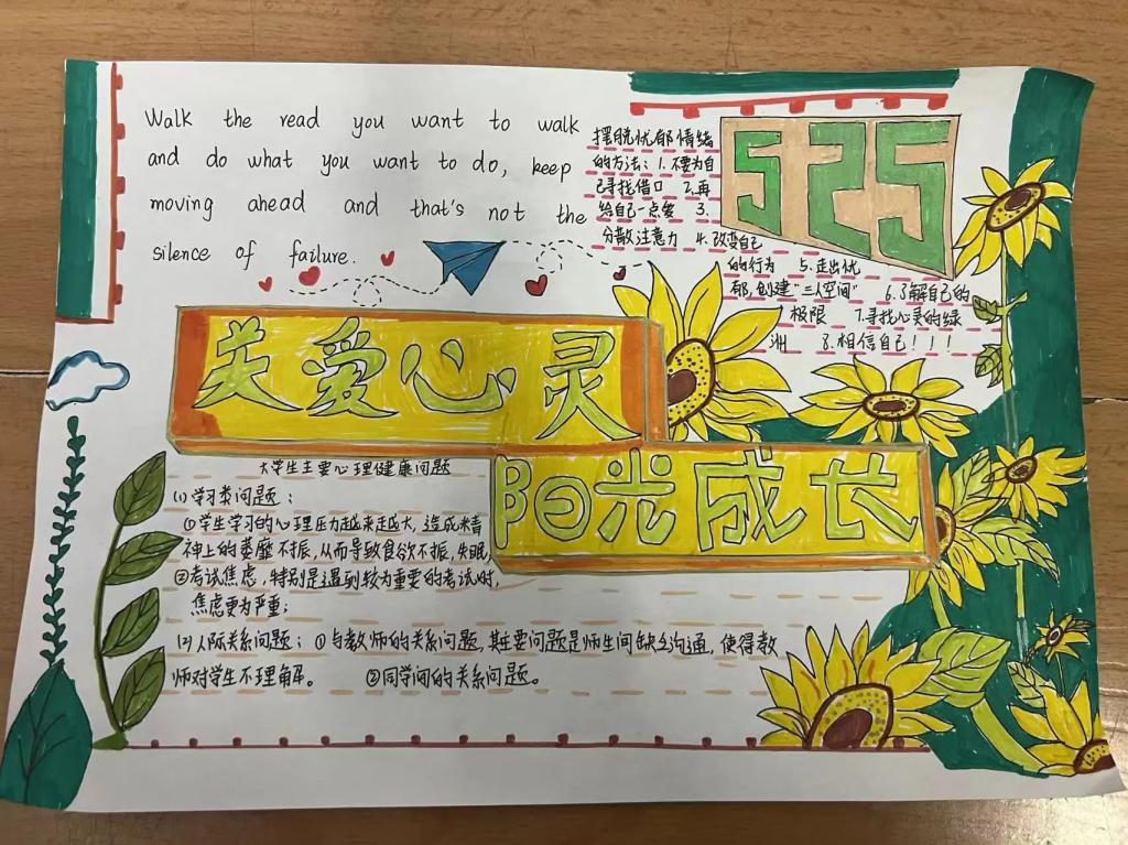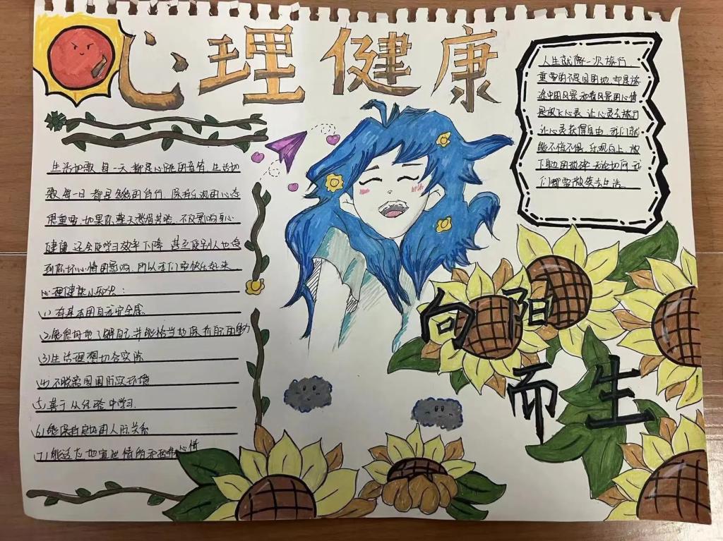 本次手抄报活动的顺利开展,不仅提高了同学们的审美情趣,丰富了同学们的想象力和创造力,更是极大地增强了同学们对心理健康的重视程度,相信同学们在未来的学习和生活中,定能以积极乐观的心态去应对各种机遇和挑战,心向阳光健康成长。