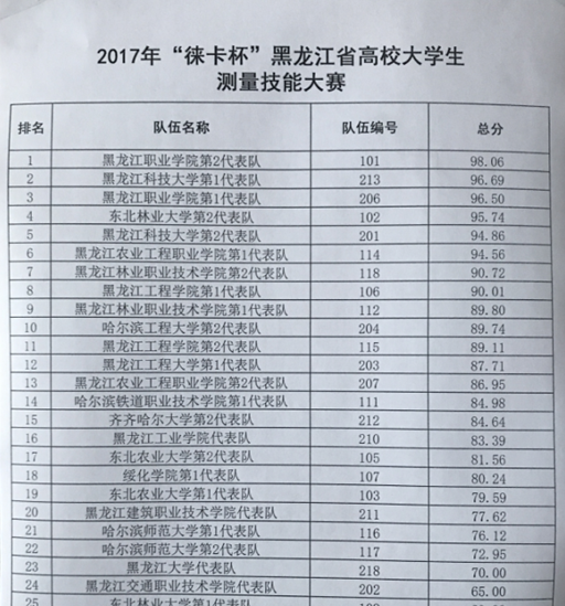 9月23日,由黑龙江省教育厅主办的2017年“徕卡杯”黑龙江省高校大学生测绘技能大赛圆满落幕。建筑工程学院共派出两只学生代表队,由建筑工程技术专业教研室主任景铎老师担任指导教师代表学校参加了此次比赛。建筑工程学院院长范海波作为本次大赛组委会成员出席了本次大赛并担任颁奖嘉宾。