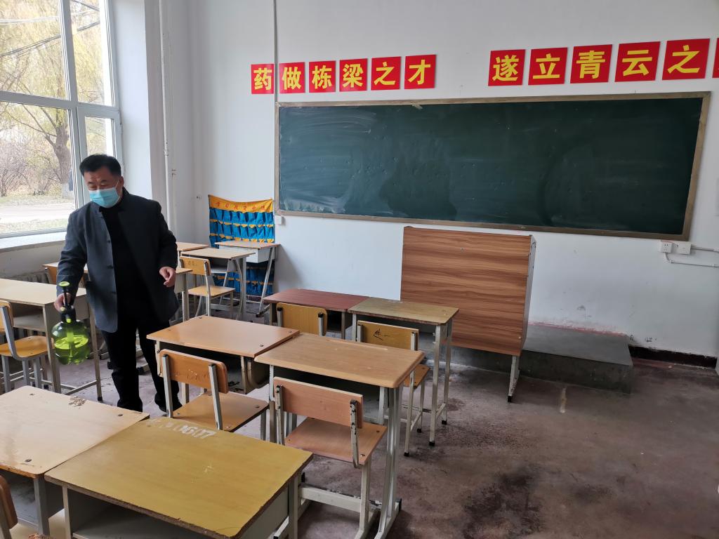 2021年11月1日上午,食品药品学院院长丁原春、党总支书记史兴山、综合办主任高财智主动加入学生党支部志愿服务队,与学生党支部教师志愿者们共同开展食品药品学院教室清扫消杀通风工作,为选择来教室上网课的学生提供安全整洁的学习环境。志愿服务队成员带着口罩、拿着清扫工具、提着装满消毒水的消杀喷雾桶,穿梭于各个教室,对食品药品学院所属全部教室进行全方位、无死角的清扫、消杀和通风。志愿者们分工明确、团结协作,有的负责清扫垃圾、有的负责摆放教室桌椅、有的负责配制消毒液、有的负责消杀通风作业。在消杀过程中,消杀桶发生爆裂,消毒水浸透了丁院长的衣服,但他没有在意,仍然带领志愿服务队顺利完成清扫消杀通风工作。整个工作持续两个多小时,虽然汗水在志愿者的额头泛起,但看到教室窗明几净、桌椅摆放整齐、地面干净整洁,志愿者们露出了欣慰又满足的笑容。