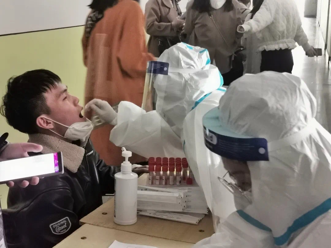 在工作人员的引导下,我院同学有秩序地从学校北门进入学校,体温测量、行李消毒、扫码登记、核酸检测。
