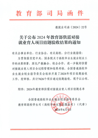 6月4日,我院申报的2项教育部2022年第二期供需对接就业育人项目顺利通过结项验收。