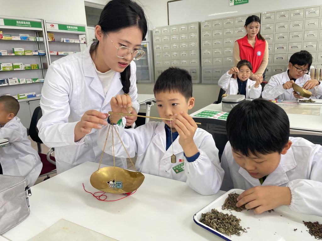 在药学知识互动问答与药物作用原理科学小实验环节中,小学生们不仅学会了如何准确区分药品类别与功效,掌握了用药安全的基本常识,还亲眼目睹了药物发挥作用的奇妙过程,极大地激发他们科学探索的热情。芦清老师带领中药传统技能大赛省赛一等奖学生共同指导小学生们辨识了四味常见中药及其功效,学习使用戥秤,亲手缝制中药香包,让孩子们深切感受到了中药文化的博大精深,活动现场洋溢着浓厚的兴趣与欢乐。