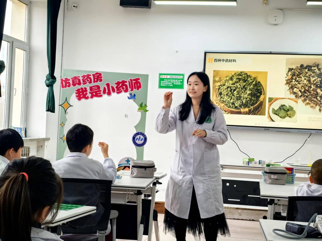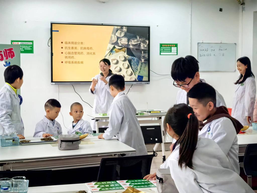 GSP仿真药房于2022由我院与吉林大药房药业股份有限公司精心共建,该药房严格遵循国家药品经营质量管理规范(GSP)各项标准,配备了先进的设施与设备,更融入了行业前沿的管理理念与操作流程,从药品的入库验收、储存保管,到销售出库、售后服务,是一个既符合行业规范又贴近真实的职业实践平台。本次活动方案由校企双导师团队共同策划,精心设计药师角色扮演、药学知识互动问答、用药安全常识讲解、药物作用原理科学小实验及中药香包制作等五大精彩环节。身着专业小药师服装的小学生们,佩戴着专属胸牌,在食品药品学院执业药师王禹力老师的耐心指导下,亲身体验了药品分类、储存管理等核心岗位,深切感受到了药师职业的神圣与责任。