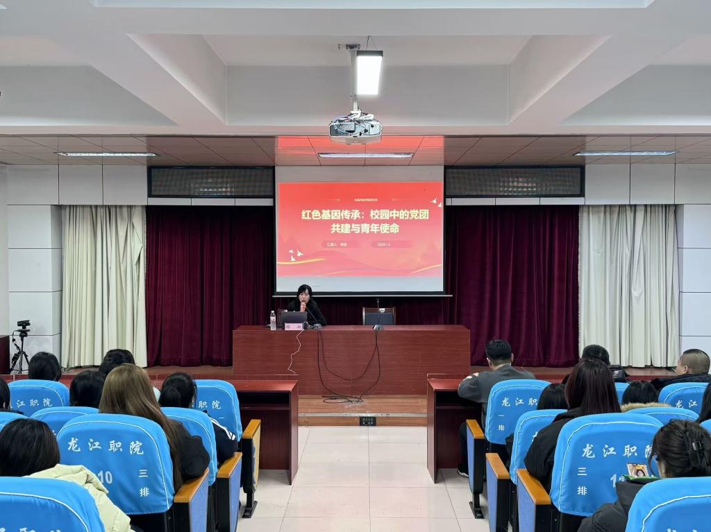 12月2日,韩双副院长以“传承红色基因肩负青年使命“为主题强调红色基因在校园传承的重要性和价值,红色基因是中国共产党在革命、建设和改革中形成的宝贵精神财富,包括坚定理想信念、无私奉献精神、顽强斗争精神和勇于创新精神。在新时代背景下,其对于筑牢理想信念根基、凝聚各方力量起着极为关键的作用,是助力青年成长成才、推动社会发展进步的强大精神动力源泉,为校园文化建设注入了鲜活且深厚的精神滋养,激励着广大青年学子在新时代征程中奋勇前行,积极担当起民族复兴的伟大使命。