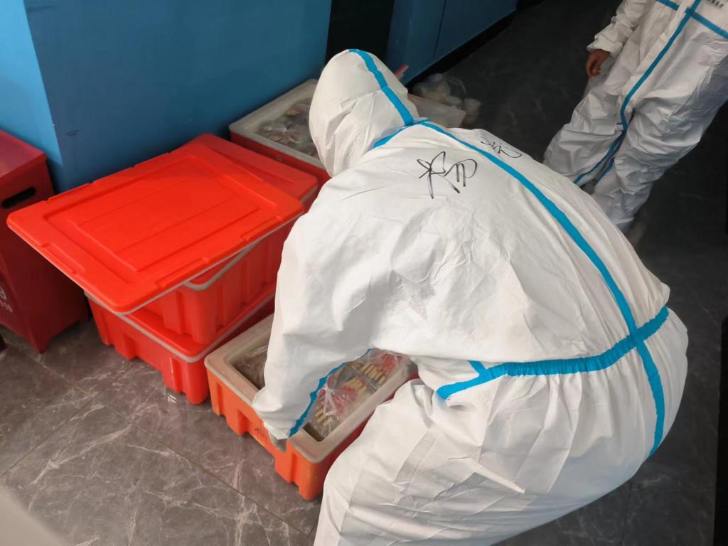 原定承担B组驻寝工作的黄志勇、杨凯两位同志也在此时克服重重困难,连备品都没来得及准备,就在接到党组织召唤的第一时间赶了过来,匆匆入驻报国公寓。工作中,三名同志严谨仔细,要做好返校学生登记、每日三餐近2000份的餐食统计和取送、组织学生分批次进行核酸检测等。在繁忙工作的同时,也没有忽视对学生身心的关爱,面对学生的各种问题和困惑,也逐一耐心解决。为便于学生管理工作,做好全面防控,在近日气温骤降自己衣着单薄的情况下,三位同志依然不分昼夜坚持在走廊值班,还时刻不忘提醒学生佩戴口罩,做好自我防护。为优先保障学生饭菜供应,待自己就餐时饭菜早已凉透,但在学生生命健康面前,一切都显得微不足道。