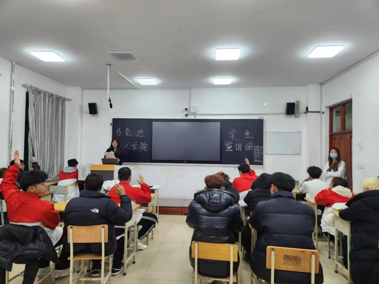 马克思主义学院与校团委、二级学院合作组织学生宣讲团自成立以来,开展以更大视野、更多层次、更高质量打造意识形态宣传大平台,以大宣讲带动大学习、大教育和大实践,推进思政教育走深走心,让青年力量在新时代绽放时代光芒。