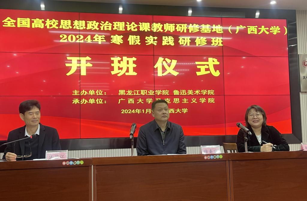 开班仪式上,广西大学党委委员、马克思主义学院院长徐秦法和jinnian金年会党委委员、宣传统战部部长杨东辉分别介绍了两所学校的情况,并对接下来的研修活动提出了希望。