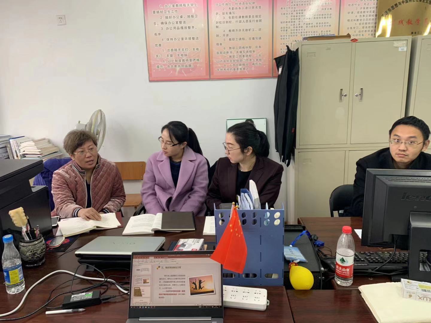 主备课人康帅老师将第三单元“弘扬中国精神”的教学内容作了深度剖析,将教学设计及构思进行了分享,也提出备课过程中遇到的疑惑。全体老师积极参与,踊跃发言,各抒己见。本次备课由教研室主任孔令声老师进行教学思路梳理和总结,孔老师强调备课时教师要做到五备:一是备内容,注重如何突出重点,突破难点。每一个单元、每一节课都有教学的重点、难点内容,重点、难点是一节课的核心,教学设计要围绕重点、难点问题做文章。二是备学生,注重学生的思想特点和知识能力、实际水平。学生是教学的主体,教学活动围绕学生实际开展才能有的放矢,学生才能有所收获。三是备学生活动,注意如何提高学生能力。教学设计中教师要思考在成果导向教学理念下课堂教学中学生活动的设计,学生活动既要针对重点内容开展,又要可以评量,结果可测。四是备教学方法和教学手段。教师备课中要根据教学目的、内容、学生特点等来选择最佳的教学方法和手段。五是备案例,注重选取最新、最佳案例。
