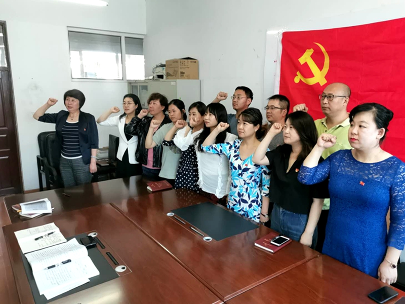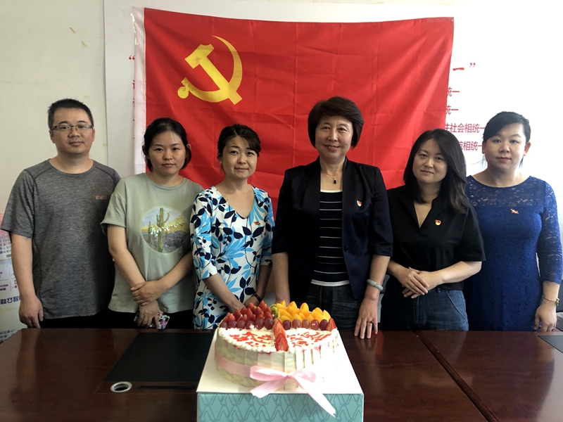 为增强党员的荣誉感、责任感、使命感、归属感,切实提高党组织的领导力和凝聚力,党课结束后,陈桂香书记带领全体党员共同为上半年入党的同志举办了政治生日会重温入党誓词,回顾初心、牢记使命。六位生日党员共同切开写有“不忘初心、牢记使命”的政治生日蛋糕,并与部门党员和群众一同分享喜悦,牢记共产党员“教育报国守初心,立德树人担使命”的初心和使命。