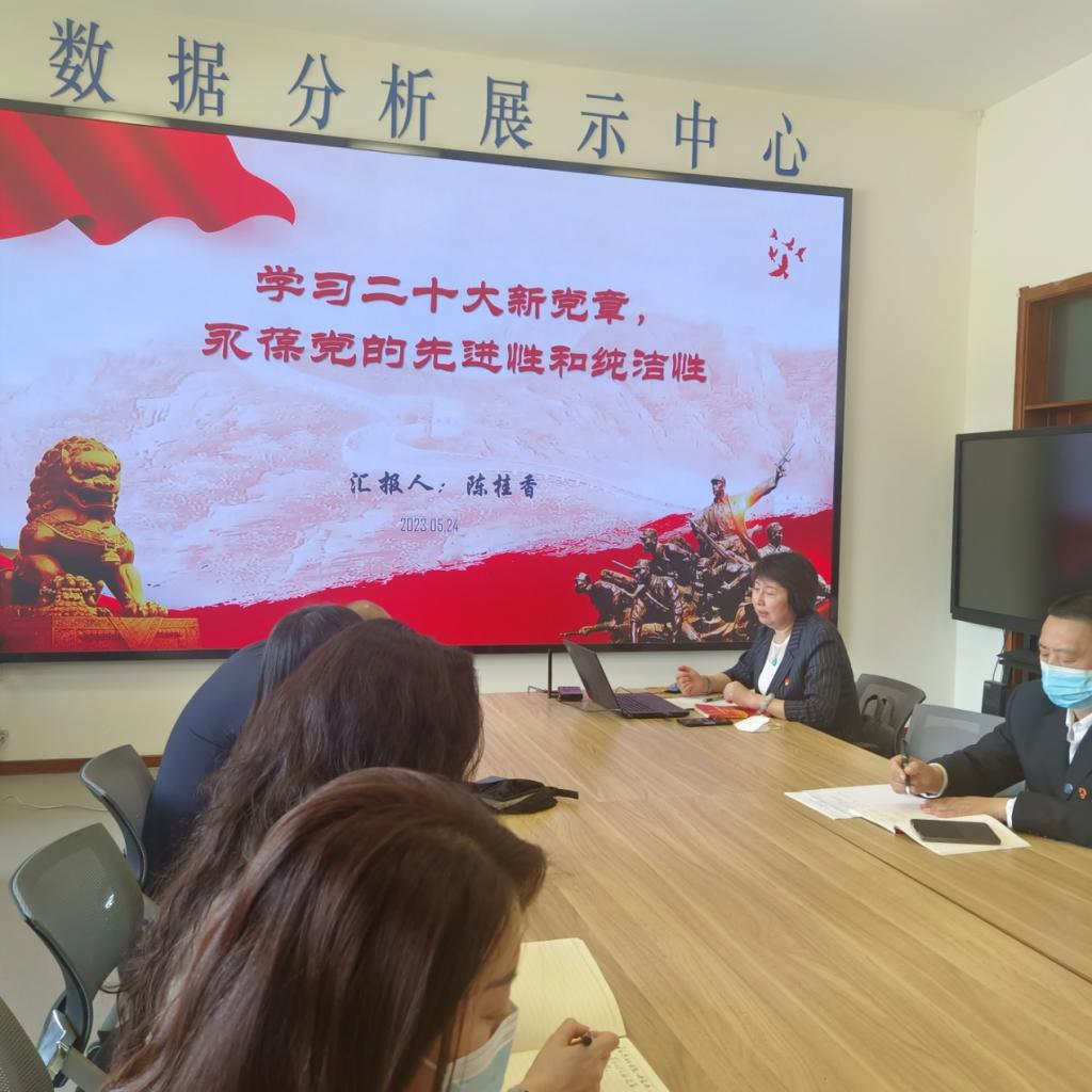 党课第一部分,院长陈桂香以“学习党的二十大新党章,永葆党的先进性和纯洁性”为主题,重点围绕“党的二十大党章修改的背景”、“党章修改历程”、“党的二十大党章修改的新内容”、“如何遵守党章、维护党章”四个问题进行了深入讲解。并强调全院同志要坚持不懈用习近平新时代中国特色社会主义思想武装头脑,坚持学习党章,指导实践规范自身言行,着重提高自身政治判断力、政治领悟力、政治执行力。