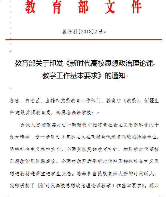 教育部关于印发《新时代高校思想政治理论课教学工作基本要求》