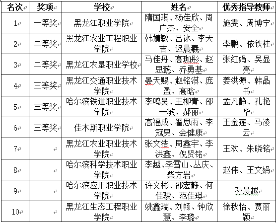 在本次比赛中,jinnian金年会代表队和黑龙江农业工程职业学院代表队分别获得前2名,成功晋级国赛。