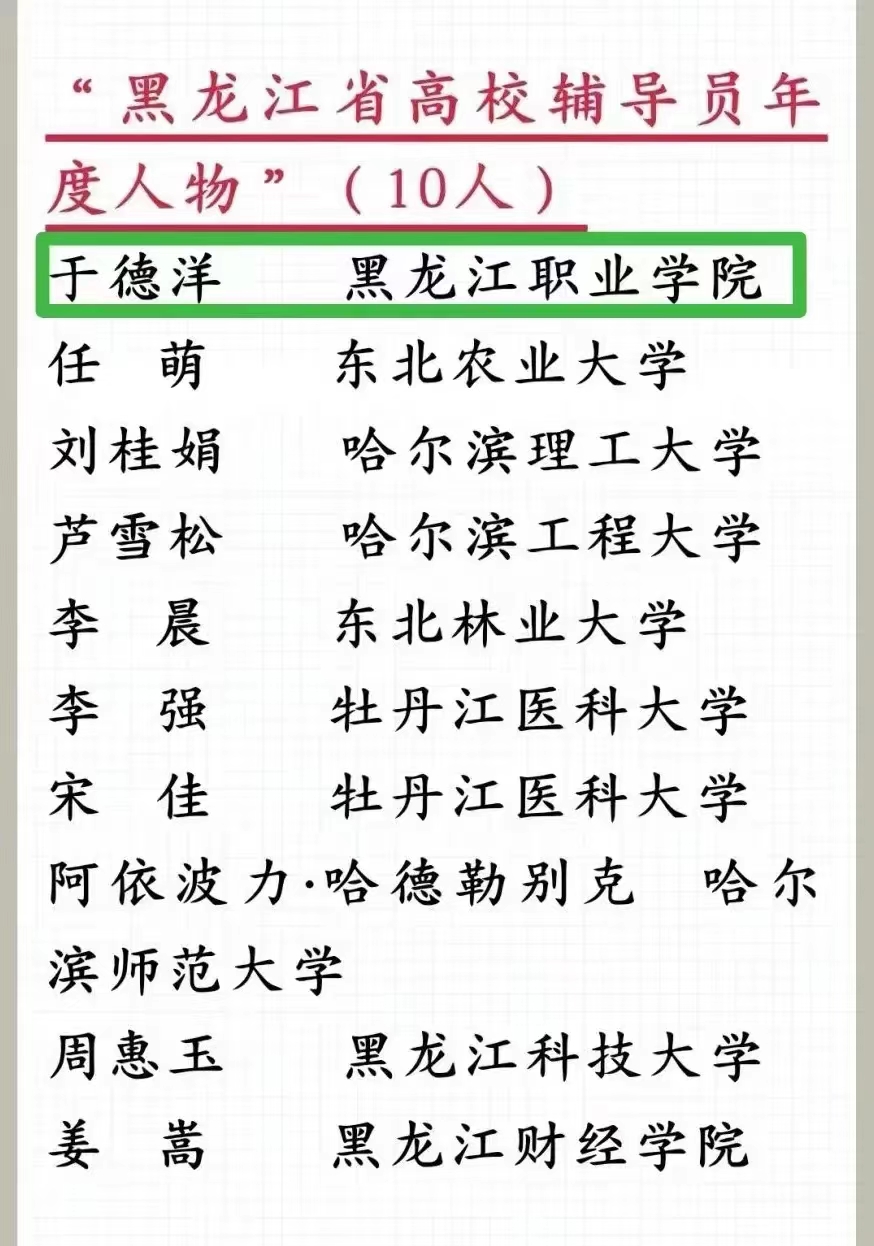 近日,由省委宣传部、省委教育工委、省教科文卫体工会主办,教育部高校辅导员培训和研修基地(哈尔滨师范大学)承办的2024年“龙江最美高校辅导员”暨第十六届“黑龙江省高校辅导员年度人物”推选展示活动落下帷幕。经过学校推荐、资格审核、通讯评审、述职答辩等环节,我院辅导员于德洋代表学校参评,荣获第十六届“黑龙江省高校辅导员年度人物”荣誉称号。