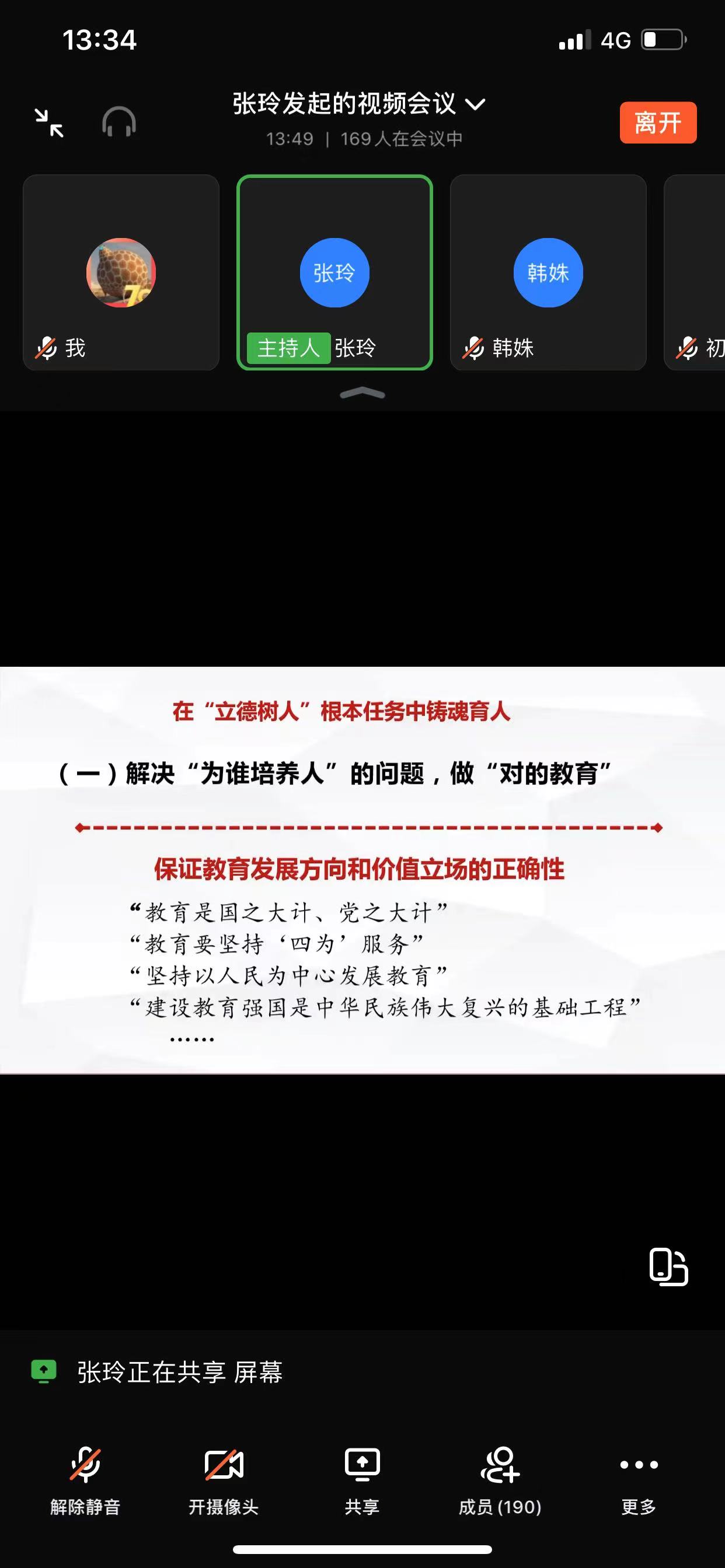 首先,张玲书记指出,立德树人是教育的根本任务,并通过引用近年来习近平总书记关于立德树人方面的经典语录进行带领学习,结合学校实际工作向各位老师强调牢记并坚持全程全员全方位育人,把立德树人融入思想道德教育、文化知识教育、社会实践教育各环节,坚决践行为党育人、为国育才使命!