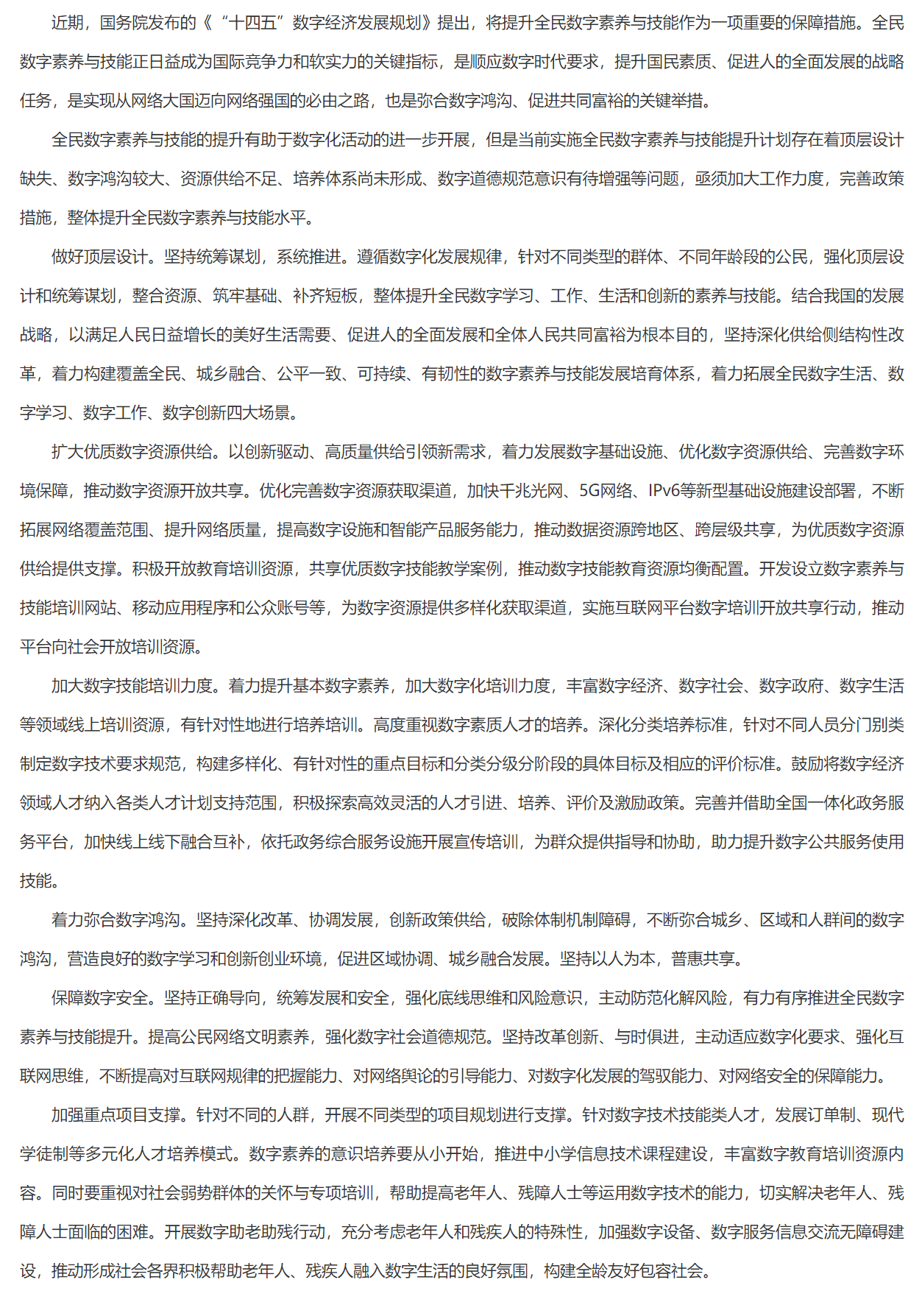 中央网信办等四部门印发《2022年提升全民数字素养与技能工作要点》