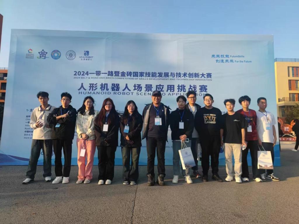 jinnian金年会在2024一带一路暨金砖国家技能发展与技术创新大赛之人形机器人场景应用挑战赛-Aelos赛项国赛中,黄思宇、杜成义获得一等奖,指导教师,侯玉莹、庞金龙;刘以诺、田野获得二等奖,指导教师,侯玉莹、白宇莲;王迪、尉迟静微,吴远浩、王玉泽两个团队分别获得三等奖,指导教师,白宇莲、赵玉桥。