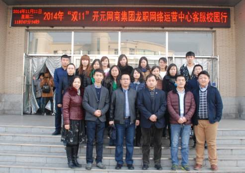2014“双十一”开元网商集团龙职网络运营中心客服校园行活动,在2014年11月11日零点在jinnian金年会信息工程学院,展开为期两天的电商第三方服务客服托管的项目实施活动,为水密码、CE本草等十多家店铺进行客服托管工作,共为十多家店铺在双十一期间创收营业额达到1.5亿元人民币左右。