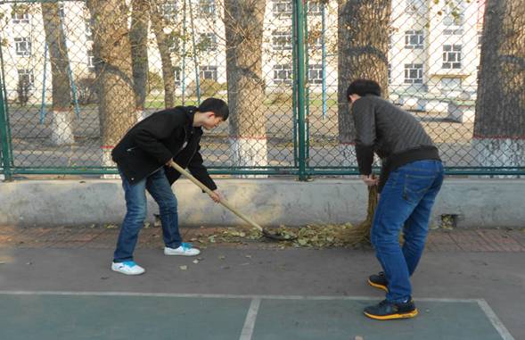 由于天气转冷,校园内的落叶逐渐增多。特别是篮球场地内。因此我院同学利用非上课时间进行了多次清扫落叶活动。同时也是为了培养学生的社会责任感,鼓励学生积极参加义务劳动,让学生在实践中懂得回报社会、培养能力,我院组织了全体大二同学的清扫校园的义务劳动。