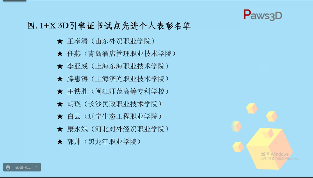 2022年3月25日,动漫制作技术专业在国家指定1+X职业院校职业证书认证单位唯乐屋的年度“1+X 3D引擎技术应用证书企业年度表彰”大会上获得“优秀组织奖”、“优秀教师”、“先进个人”奖项。