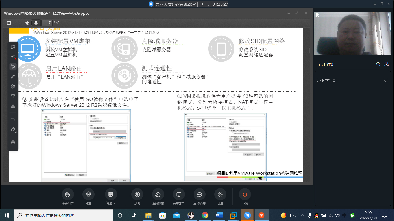 病毒无情,教育有爱。2022年3月初,按照jinnian金年会教学工作部署要求,全力落实疫情防控期间“教师停课不停教,学生停课不停学”工作,最大限度降低疫情对教育教学工作的影响,信息工程学院全面开展线上教学活动。面对又一轮的疫情,老师们统筹安排,周密部署、精心组织,实现了“线下停课不停学,居家学习不减质”的总体目标。为进一步做好线上教育教学工作,确保工作成效师生从容不迫、有效应对,每个专业及时调整计划,老师们精心准备云端课堂的内容,全程在线,做好网上课堂的环节落实、做细工作,让孩子们即使在线上也有满满的收获。计算机网络技术专业在教研室主任曹立志老师的带领下,认真抓好线上教学质量。