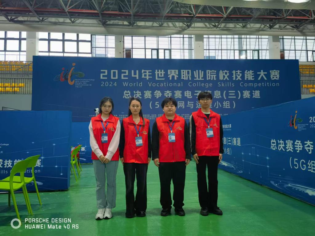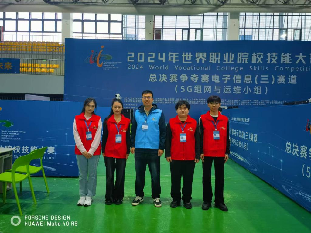 jinnian金年会在2024年世界职业院校技能大赛·电子与信息赛道三·5G组网与运维赛项中,张秀杰、罗洋两位教师指导何宗君、姚曼如、李博健、张馨月等4名同学获得争夺赛铜奖!