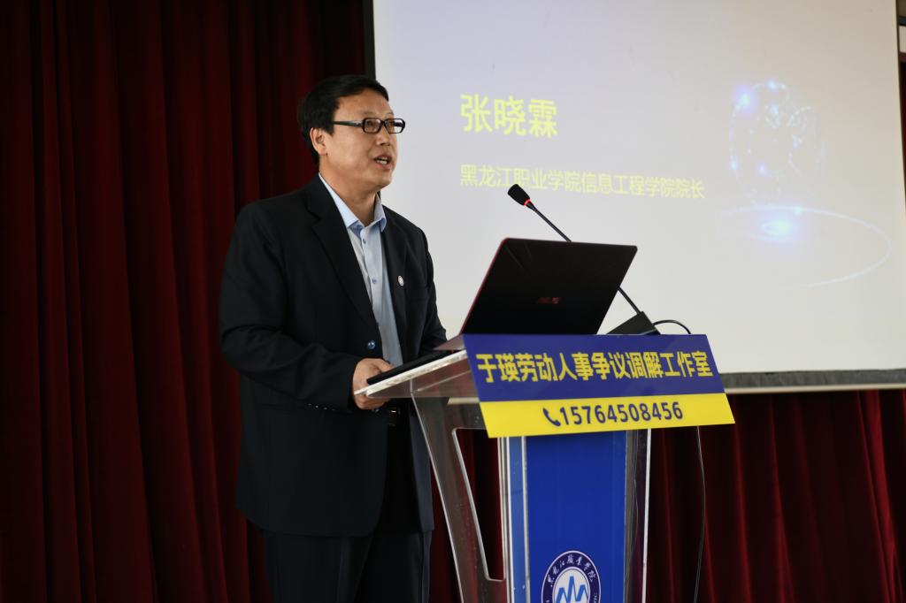 信息工程学院院长张晓霖,哈尔滨市劳动人事争议仲裁院副院长韩伟明、审理庭庭长程泽铭,双城区人社局副局长徐洪斌、双城区劳动人事争议仲裁院院长高深,以及双城区委政法委、双城区司法局相关科室负责人出席本次活动。