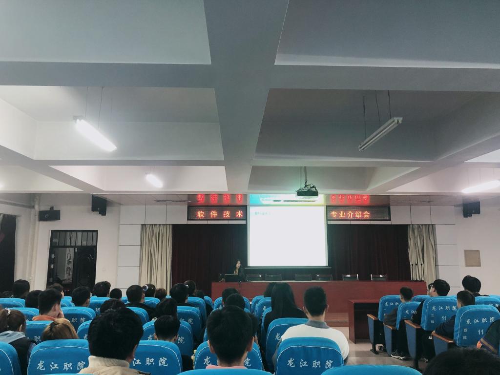 2020年10月19日18:00在2号教学楼大会议室,信息工程学院软件技术专业联合沈阳东软睿道教育服务有限公司举办了2020级软件技术专业新生专业介绍会,参会人员有软件技术教研室全体教师和来自沈阳东软睿道教育服务有限公司黑龙江省哈尔滨高校合作经理苗文宇及全体2020级132名新生。