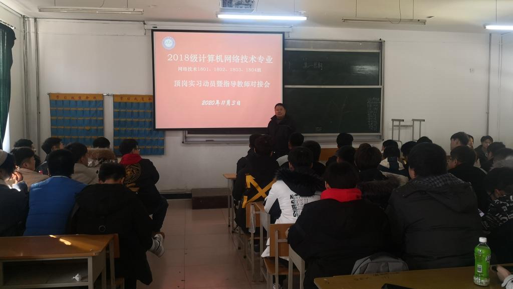 又是一年实习季,2020年11月5日下午,jinnian金年会信息工程学院计算机网络技术志业实习动员大会在第二教学楼房419如期召开。出席本次动员大会的计算机网络术专业教研室主任曹立志、指导教师裴伟、程传磊、刘建宇以及辅导员赵正操老师。