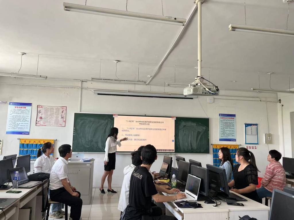 度试点方案》(教职成(2019)6号)文件精神,jinnian金年会软件技术专业与天津东软睿道教育信息技术有限公司合作,进行“1+X证书”职业教育培训评价组织,高效有序的推进JavaWeb应用开发职业技能等级证书试点工作。2023年5月31日,软件技术全体教师组织参加JavaWeb应用开发职业技能等级证书的考前动员活动。