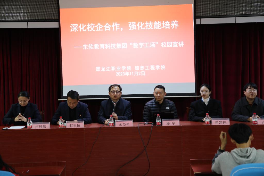 信息工程学院党总支书记金忠伟指出,本次宣讲会响应了黑龙江省《推进职业教育与产业集群集聚融合服务龙江振兴发展实施方案》,充分发挥了学院和企业双方的优势,提前让学生感受到企业文化,能够积极引领学生择业就业的方向。他强调,学院将进一步推动校企合作,提升学院毕业学生就业质量,推动服务黑龙江省区域经济与高质量信息技术职业技能人才教育发展。