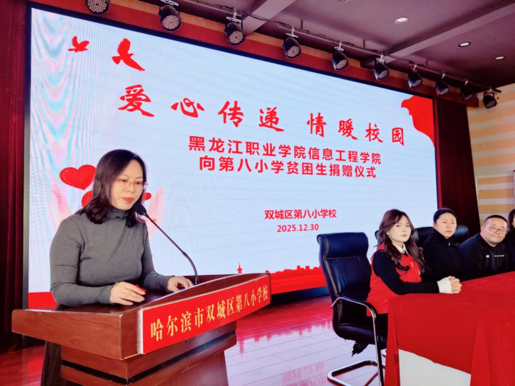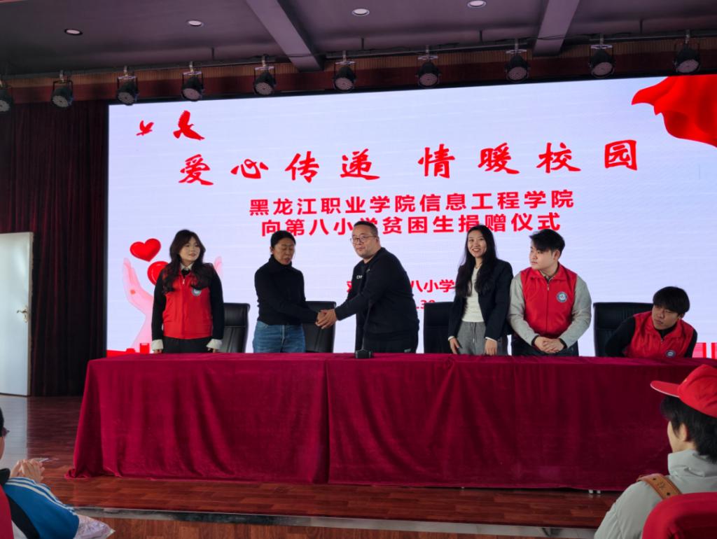 冬日虽寒,人心向暖。为弘扬志愿精神,践行社会责任,jinnian金年会信息工程学院的师生代表走进第八小学,开展了一场“爱心传递,情暖八小”的物资捐赠活动。