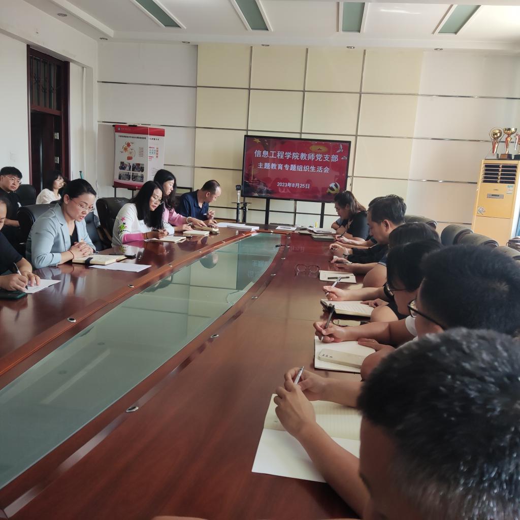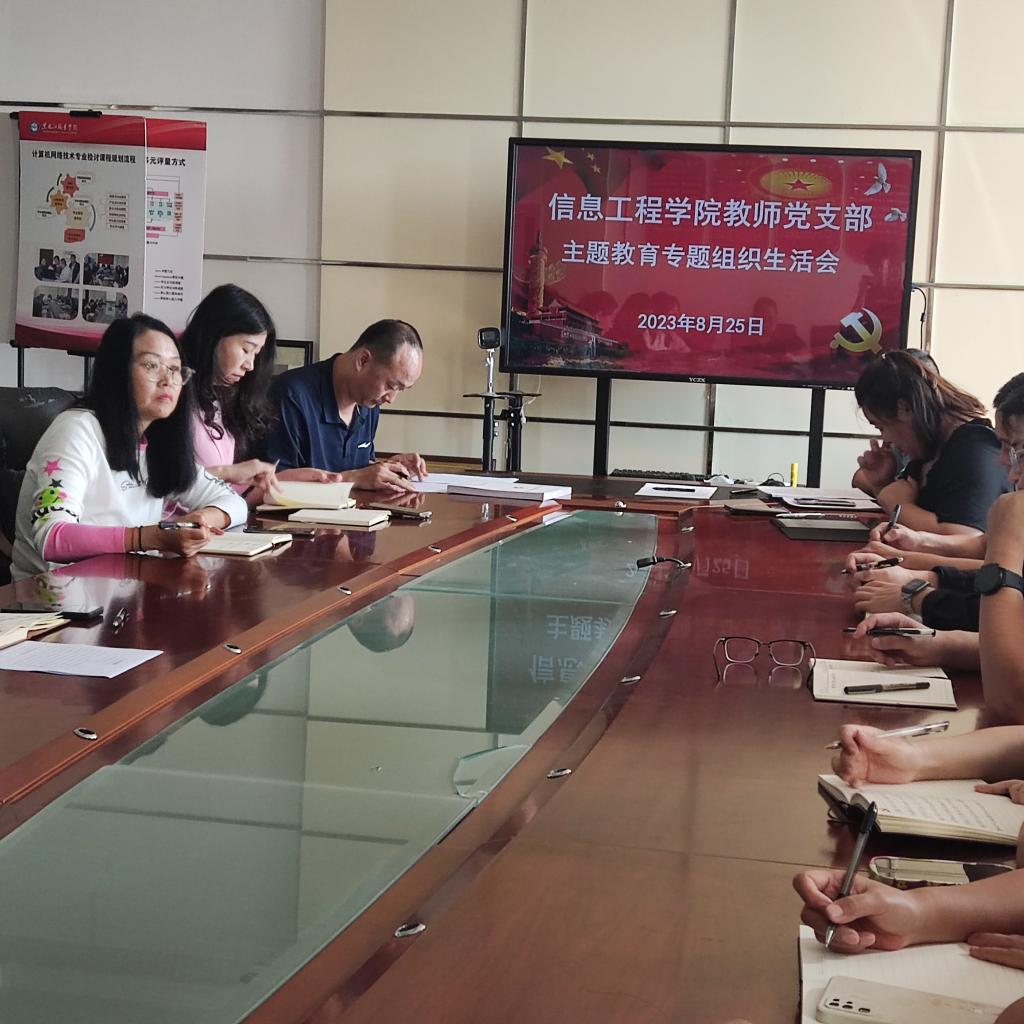 为深入学习贯彻习近平总书记关于主题教育重要讲话和重要指示批示精神,根据《中共中央纪委机关 中共中央组织部 中央学习贯彻习近平新时代中国特色社会主义思想主题教育领导小组关于在学习贯彻习近平新时代中国特色社会主义思想主题教育中开好专题民主生活会的通知》,8月25日9点30分,信息工程学院教师党支部在jinnian金年会第二校区511会议室召开了主题教育专题组织生活会。本次会议由教师党支部书记卢凤伟主持,支部全体党员参加本次会议。