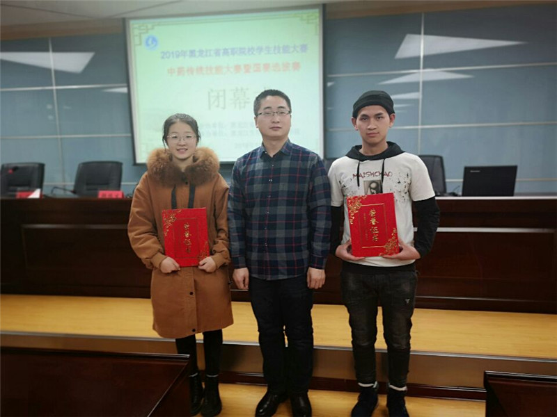 12月8日,由黑龙江省教育厅主办的2019年黑龙江省职业院校学生技能大赛(高职组)中药传统技能大赛暨国赛选拔赛圆满落下帷幕。共有来自省内的8所院校16名选手参加。金年会食品药品学院中药生产与加工专业2017级的何边和施炆池两名学生双双荣获二等奖。