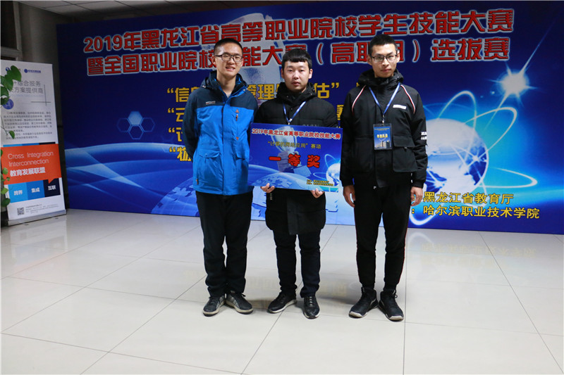 11月17日,2019年黑龙江省职业院校学生技能大赛国赛选拔赛“计算机网络应用”赛项顺利举行。全省共14支代表队的42名选手参赛。金年会代表队由2017级计算机网络技术专业学生林士博、秦明庆、孟祥宇组成,教师曹立志、郭帅指导,经过四个小时的紧张比赛,金年会代表队以团体总分第一名成绩闯入全总决赛。